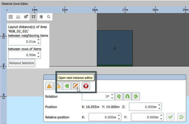 Der Rack Instance Editor steht Ihnen im Material Zone Editor oder im Rack Planogram zur Verfügung, nachdem ein Regal ausgewählt wurde: