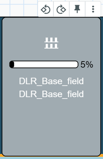 In der 2D-Ansicht werden Ihnen auf den ersten Blick der Name und Regaltyp des ausgewählten Regals angezeigt - in diesem Fall "DLR_Base_field". Ebenso wird die Regalauslastung über die obere Leiste und der Prozentzahl daneben dargestellt. Diese ergibt sich aus der Summe der Abmessungen aller Boxen innerhalb eines Regals entlang der Regalebene + dem Abstand zwischen benachbarten Boxen innerhalb eines Regals / die Summe der Breiten aller Regalebenen.