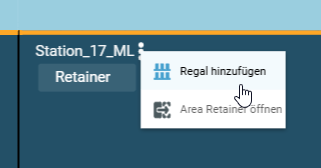 Über das "drei Punkte"-Symbol können Sie das Regal löschen, in den Area Retainer verschieben oder gegen ein anderes Regal aus der Ressourcenliste austauschen.