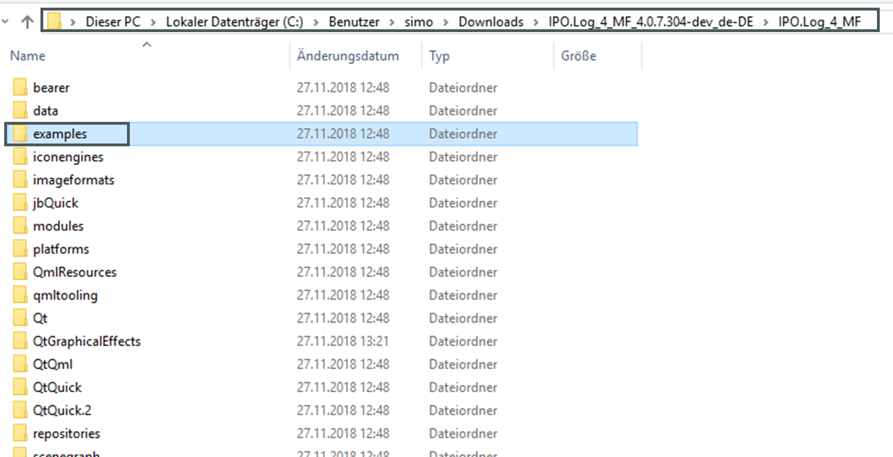 Nach der erfolgreichen Installation von ipolog 4 Material Flow finden Sie in Ihrem Installtionsverzeichnis (z.B. C:\Program Files\IPO.Plan\IPO.Log_4_MF\examples) einen Ordner namens "examples".