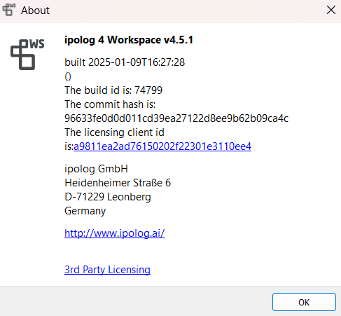 Um Ihre Supportanfragen zu beantworten ist es für uns sehr hilfreich, wenn Sie uns Ihre aktuell verwendete ipolog Version mitteilen. Diese finden Sie wie folgt: