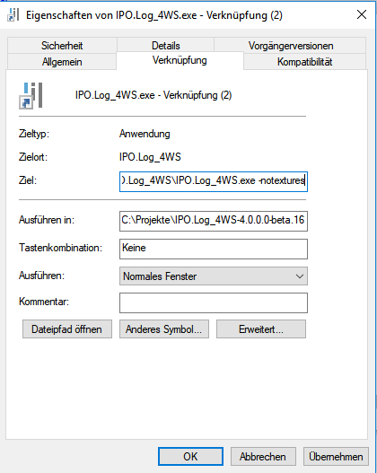 7. Schreiben Sie "-notextures” hinter den Pfad, der im "Ziel"-Feld hinterlegt ist: