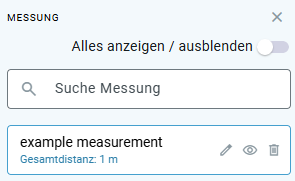 All measurements that you have transferred from ipolog Workspace are listed here. You can show or hide them collectively using “Show/Hide All.”