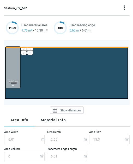 Below the 2D view, you will find further information about the selected material area and the material located on it.