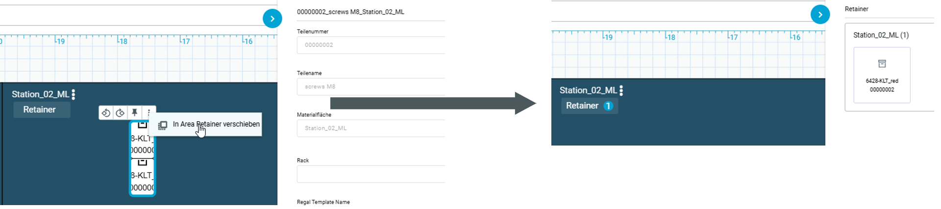 Afterwards, the desired boxes/racks can be dragged and dropped into the side panel and thus stored in the area retainer.