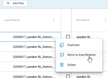 When you select a rack or box in the 2D view, the “three dots” icon will appear above it. Here you can select the “Move to Area Retainer” option: