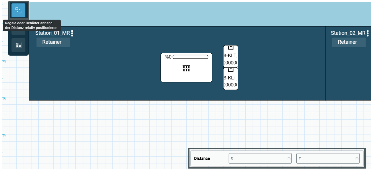To set a relative distance between racks and materials or between racks and between materials, use the “Position racks or containers relatively based on distance” option in the left menu bar.