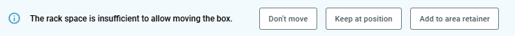 If there is space on the selected rack, the material will be placed on a fitting shelf. If not, a message will appear. Here you can choose whether you want to keep the material where it is, move it to the new position, or add it to the area retainer: